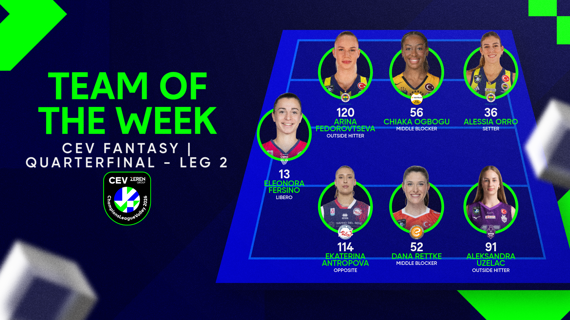 CEV ZEREN group fantasy team of the week from QuarterFinals
