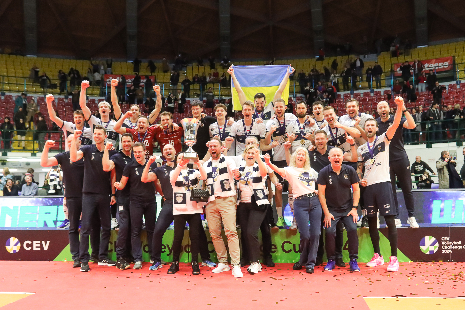 Back in 2024, PGE Projekt Warszawa lifted the Challenge Cup, with Yurii Semeniuk playing a key role and being named the tournament’s MVP. On the podium, he stood out carrying the Ukrainian flag - a very special one, as he later explained, means a lot to him as it bears the signatures of his national teammates. To this day, he still travels with the Ukrainian flag to matches.
