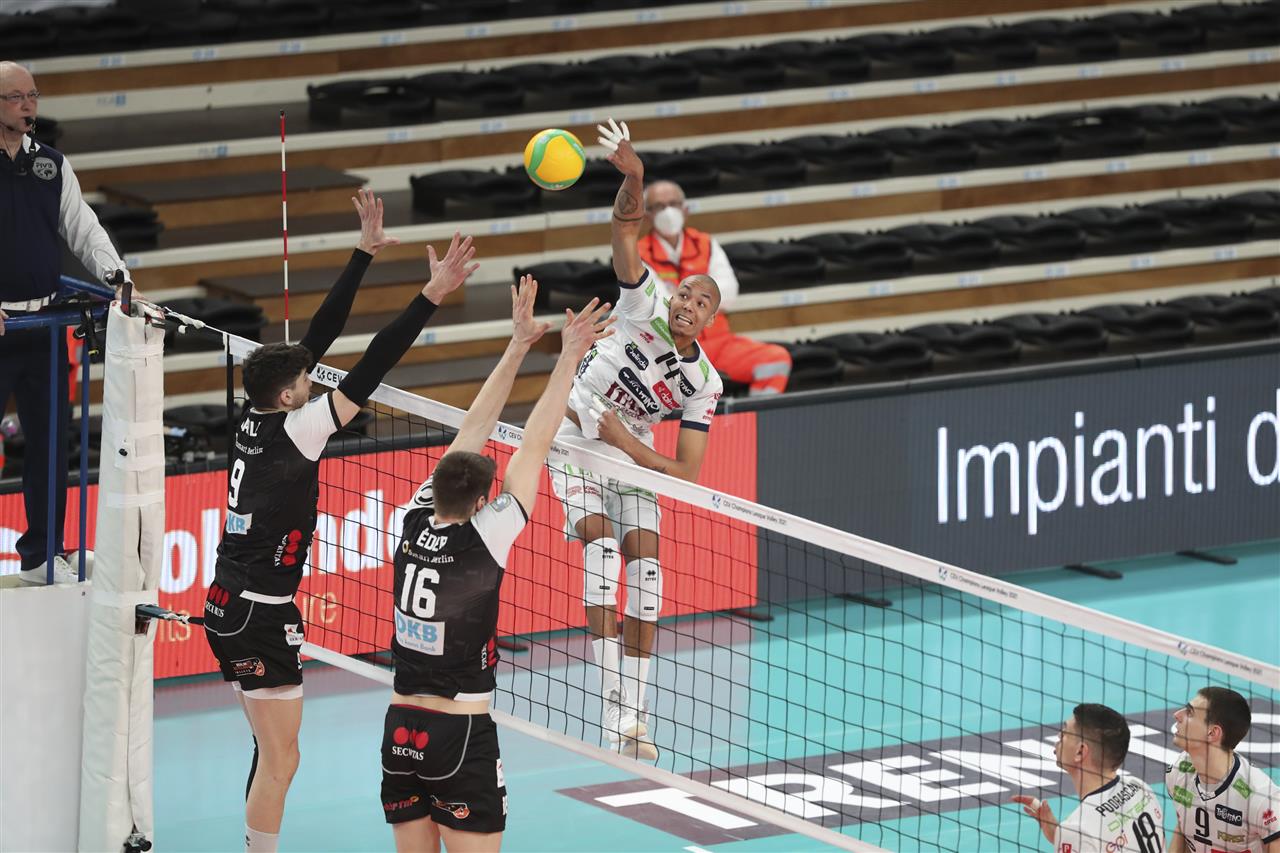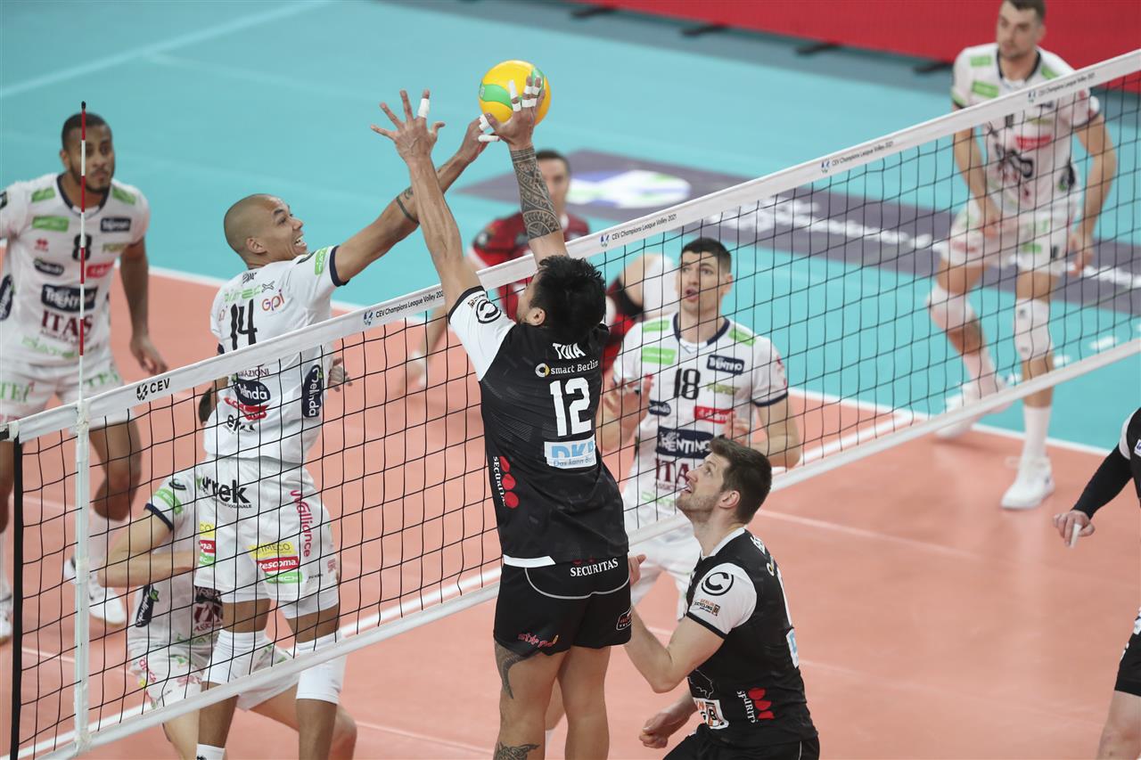 TRENTNIO Itas continue their #CLVolleyM campaign undefeated. In the first quarterfinal matchup with BERLIN Recycling Volleys, the Italian club emerge victorious in four sets being led by their unstoppable opposite Nimir Abdel-Aziz, who scored as many as 28 points. It was also the 100th game in the Europe's prime club competition for TRENTINO that hope to progress to semifinal phase for the sixth time and for the first time since 2015/16. On the other side, BERLIN Recycling Volleys - that aim to disrupt the Italians' plans - can reach the Champions League semifinals for the third time and become the first German team to reach this phase of competition for more than two times. BERLIN Recycling Volleys have once managed to advance to the next round in the knockout round of the CEV Champions League after losing the first leg. In the 2016/2017 season, the Berliners lost 2-3 to Istanbul BBSK in the playoff-12 and were already 0-2 down in the second leg before turning the game around and advancing 15-11 in the golden set. This time, BERLIN can count on Denys Kaliberda who is back in the squad and was absent for the first duel due to back problems.