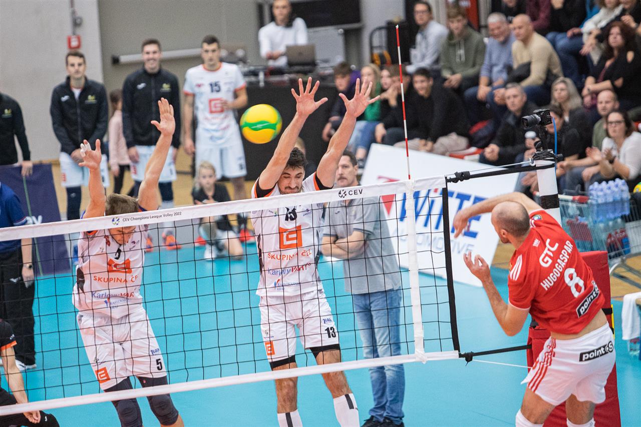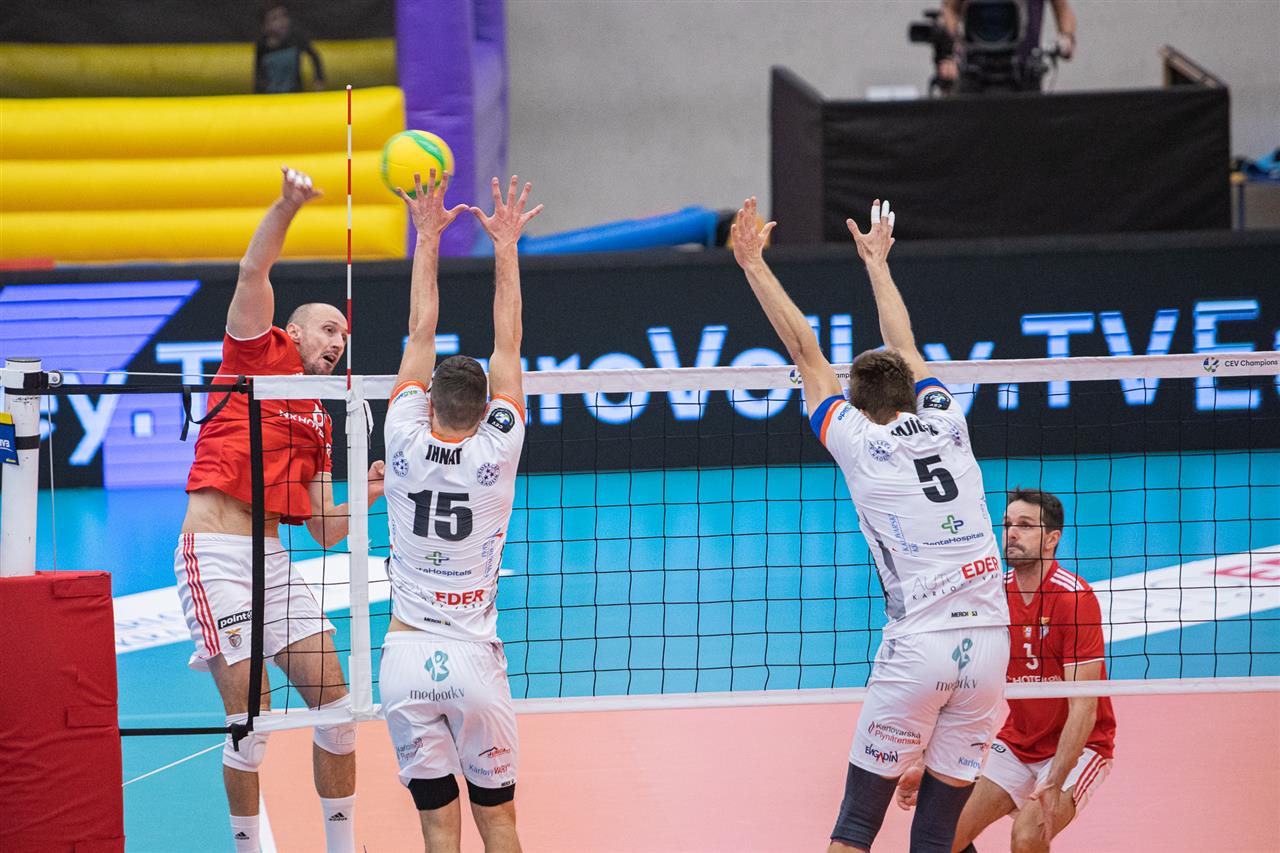 The number of successful point winning blocks of ČEZ KARLOVARSKO compared to Sport LISBOA e Benfica.