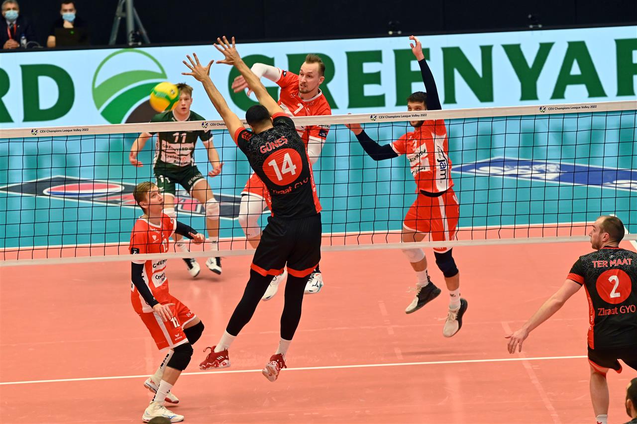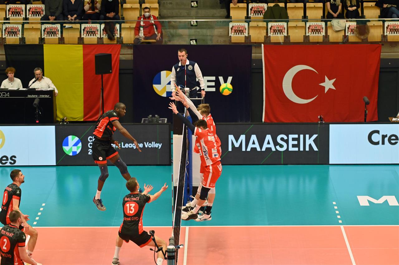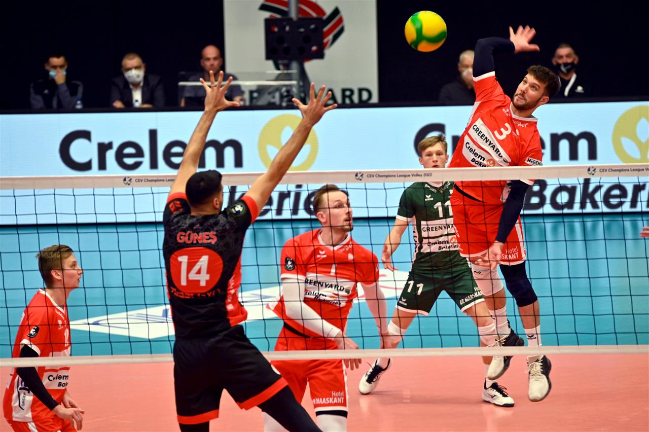 •  After three defeats without a single set win, Greenyard Maaseik immediately broke the curse against Ziraat Bankasi Ankarain in the first set. After an early 2-4, local captain Jolan Cox overwhelmed the Turkish champions with 4 aces for a clear 15-11 lead. With five more succesful attacks he led his team to 25-19.