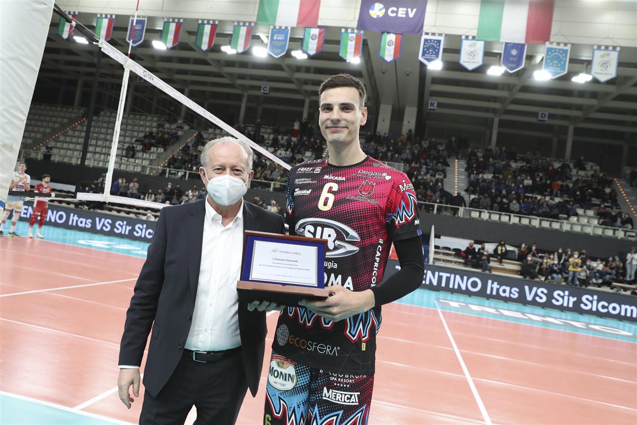At the beginning of the match, Simone Giannelli, a player of Perugia for 12 seasons, returned to Trento to play against his former team.