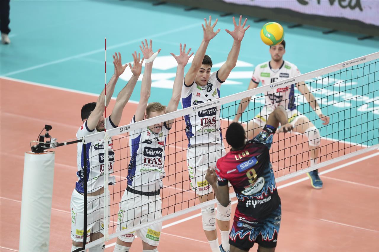 Leon overcomes the triple block (6-13) by Trentino ITAS, showing all his strength. The first dispute came after a pipe of Anderson that stepped out the line.