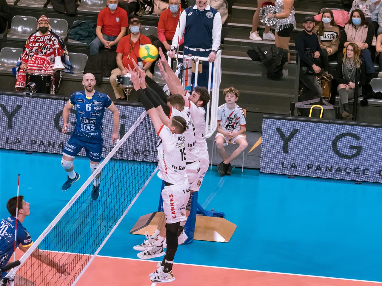 The balance disappeared in the second set: the Italians were better on every fundament and got an impressive score (25-9). It seemed the match was quickly approaching its end, but there was a French reaction in an exciting third set. AS CANNES Dragons fixed their attack and scored 19 Winning Spikes, and both teams fought long as the set’ score was 29-27.