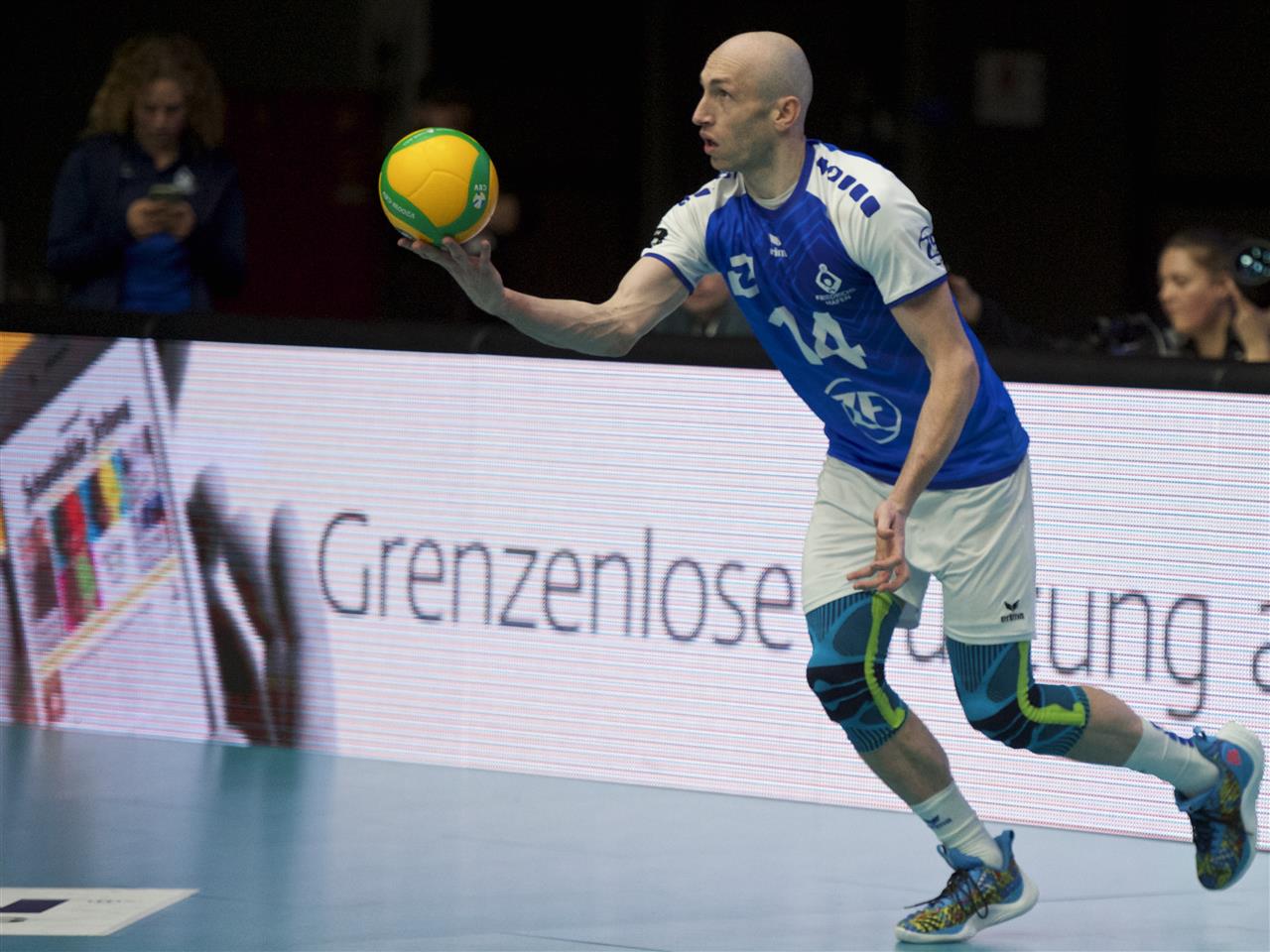 The warrior is back. After suffering a rupture of the Achilles tendon during the German playoff finals in April, Vojin Cacic fought back to be part of the team again. The outside hitter from Montenegro and captain of the National Team celebrated his first appearance after seven months of recovery one week ago in the German Cup Quarter Finals.