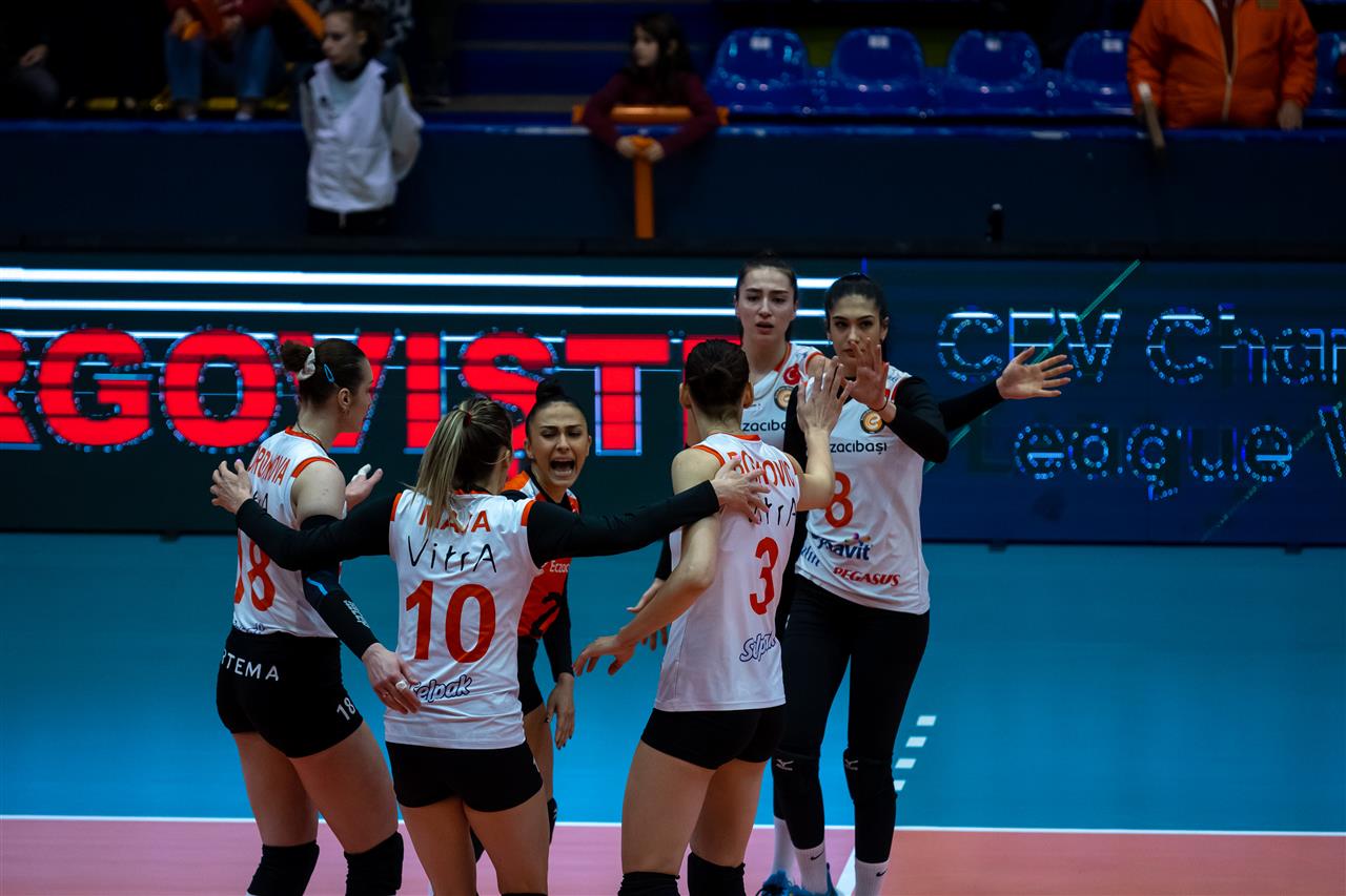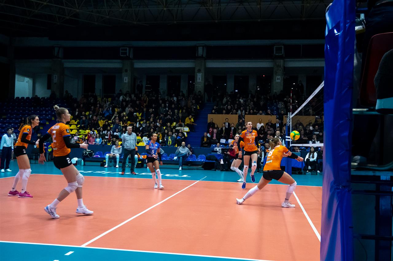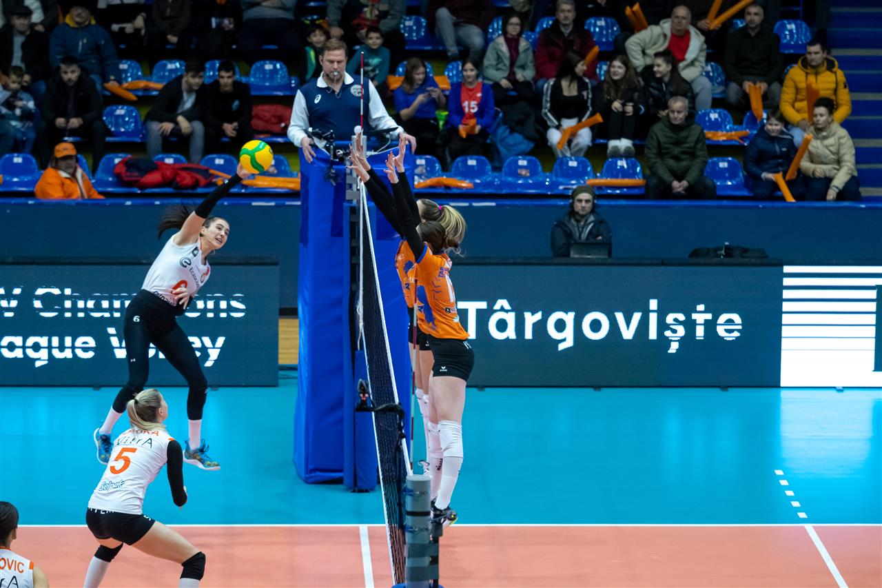 In Pool E, C.S.M. Targoviste took on undefeated leader Eczacibasi Dynavit Istanbul. The team around coach Ferhat Akbas had a chance to secure a spot in #CLVolleyW quarterfinals. All they needed were three points to their name in the standings. However, at Sports Hall Targoviste, the home team played bold, not allowing Eczacibasi to run away with the score. Targoviste impressed with their efforts in block (5 stuffs in the opener), including a great performance from Mira Todorova - 3 winning blocks. But their own mistakes (10-5) made a difference in favour of Eczacibasi, who from 18-18 managed to build a slight advantage that let them win the set. Tijana Boskovic, with 60% of success in attack, was a top scorer, having 7 points to her name.