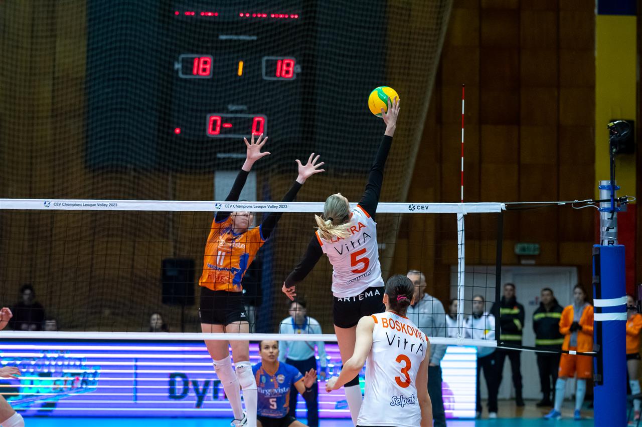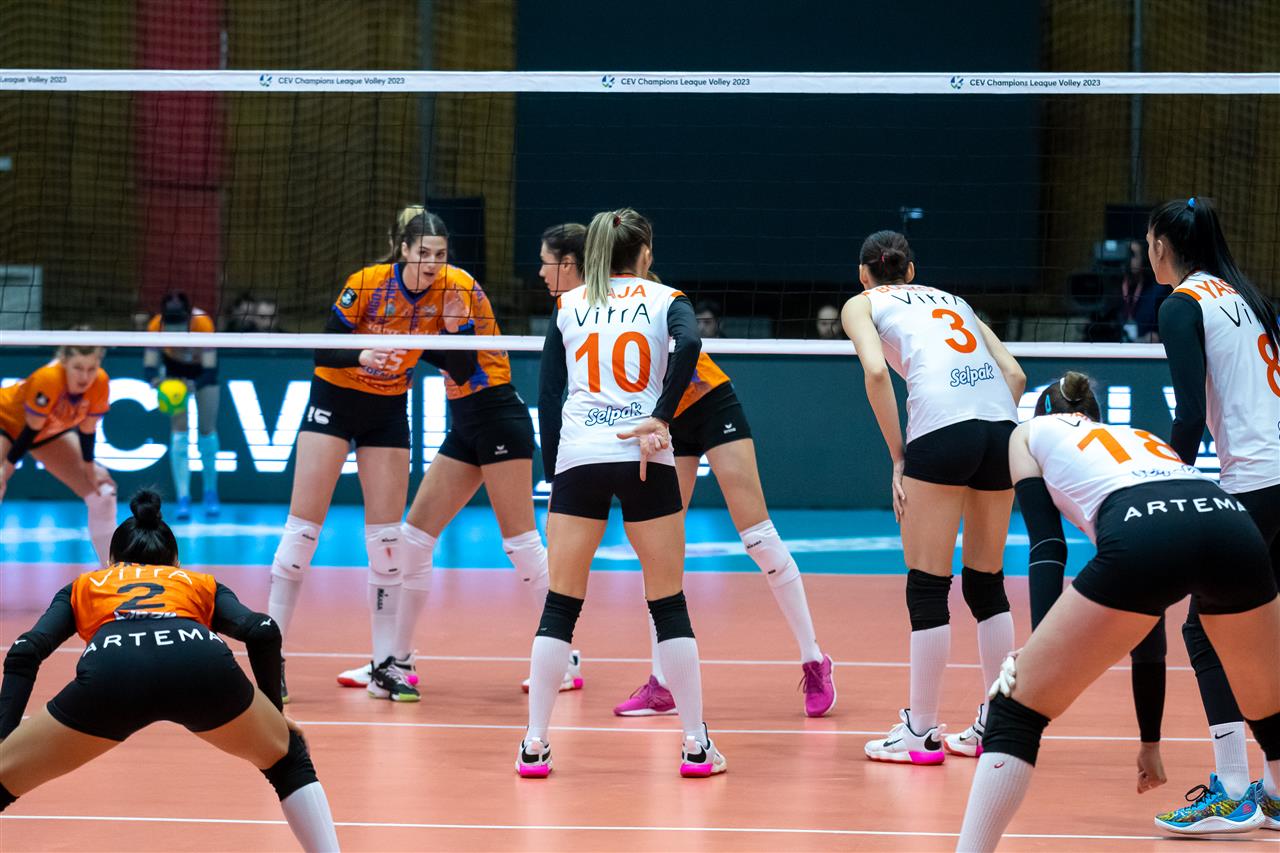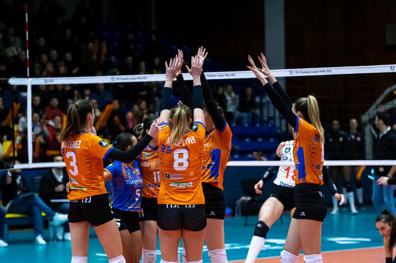 In Pool E, C.S.M. Targoviste took on undefeated leader Eczacibasi Dynavit Istanbul. The team around coach Ferhat Akbas had a chance to secure a spot in #CLVolleyW quarterfinals. All they needed were three points to their name in the standings. However, at Sports Hall Targoviste, the home team played bold, not allowing Eczacibasi to run away with the score. Targoviste impressed with their efforts in block (5 stuffs in the opener), including a great performance from Mira Todorova - 3 winning blocks. But their own mistakes (10-5) made a difference in favour of Eczacibasi, who from 18-18 managed to build a slight advantage that let them win the set. Tijana Boskovic, with 60% of success in attack, was a top scorer, having 7 points to her name.